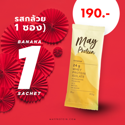 เมย์โปรตีนกลิ่นกล้วย ในเมย์โปรตีนประกอบด้วยเวย์โปรตีนไอโซเลตสูงถึง 24 กรัม ต่อ 1 ซอง ช่วยสร้างความแข็งแรง เพิ่มมวลกล้ามเนื้อหลังการออกกำลังกาย ลดการสลายของกล้ามเนื้อหลังการซ้อมหนัก เมย์โปรตีนอุดมไปด้วยวิตามินมากถึง 8 ชนิด เพื่อต้านอนุมูลอิสระ บำรุงข้อต่อ ควบคุมน้ำหนัก เสริมสร้างภูมิต้านทาน เพิ่มกระบวนสร้างและฟื้นฟูร่างกายได้อย่างมีประสิทธิภาพ